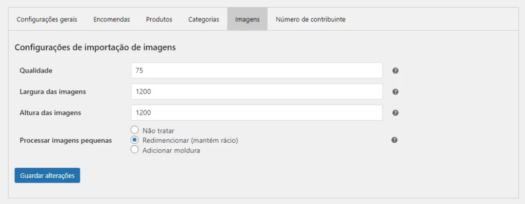 Não precisa de se preocupar com o trabalho de processamento das imagens dos produtos enviadas, pois o sincronizador vai fazer isso por si. Assim, basta que envie imagens de dimensão igual ou superior ao definido como ideal para o seu site, que o sincronizador vai fazer o redimensionamento automático das imagens e aplicar o factor de qualidade para redução do tamanho do ficheiro. Além disso, também vai converter para o formato ".webp" ideal para páginas web.